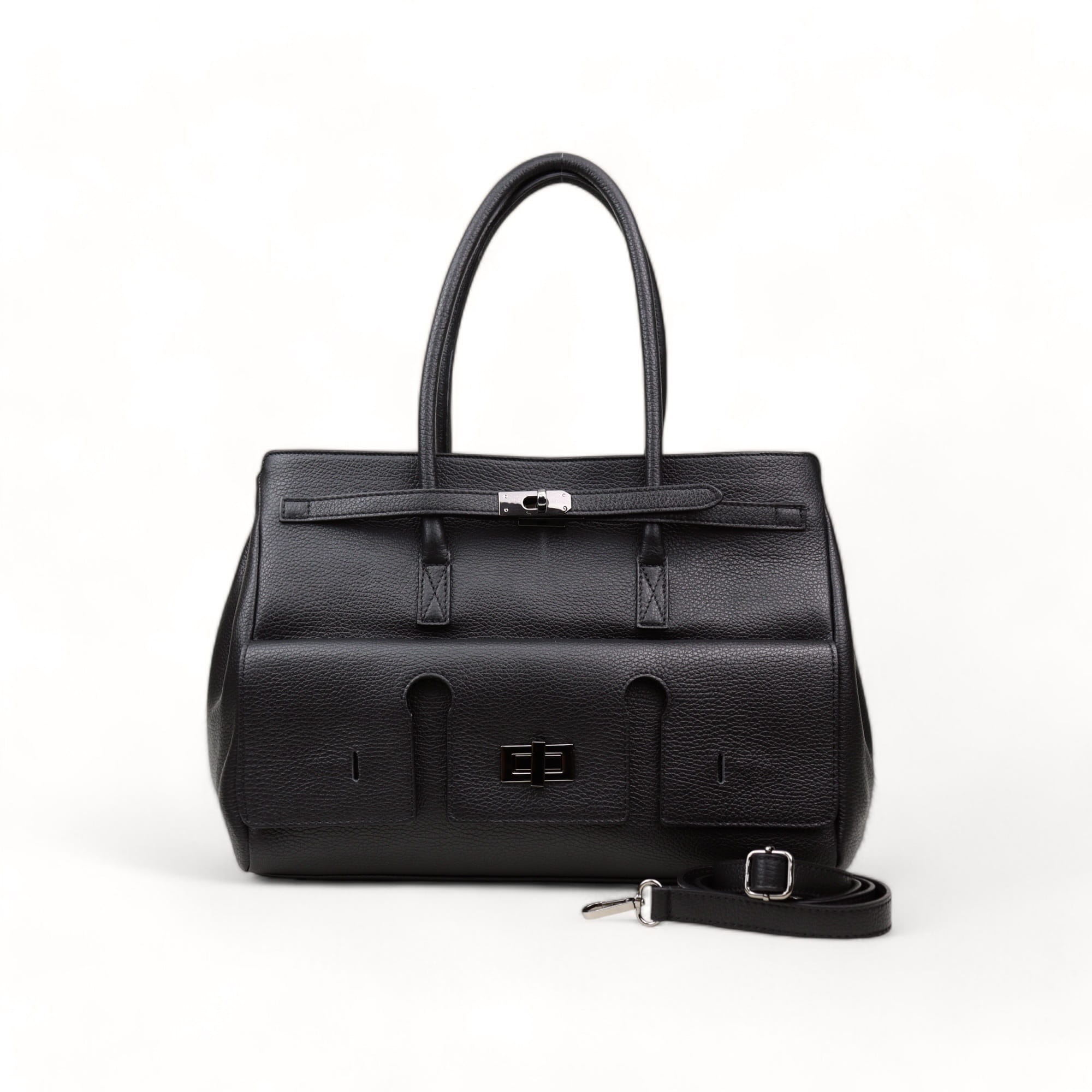 Elegancka, stylowa torebka damska w większym rozmiarze, która przyciąga wzrok swoim niezwykłym designem. Z przodu znajduje się bardzo ciekawa kieszeń, która dodaje jej funkcjonalności i wyjątkowego charakteru. To prawdziwy transformator – dzięki przemyślanej konstrukcji potrafi zaskoczyć swoją praktycznością. Idealna zarówno na co dzień, jak i na specjalne okazje, ta torebka łączy w sobie elegancję i nowoczesny styl, podkreślając indywidualność każdej kobiety.