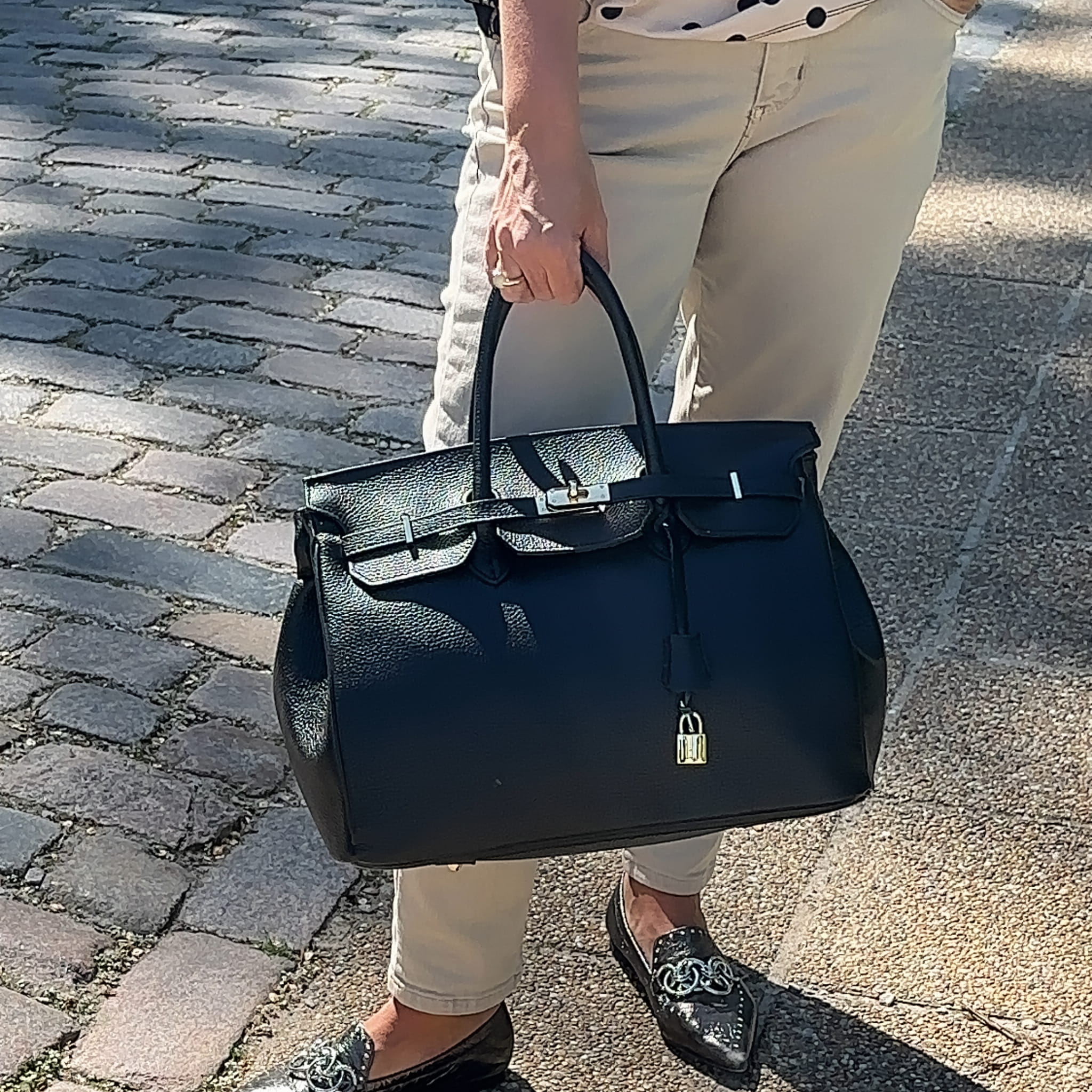 Ta stylowa duża torebka jest idealna dla osób, które są zawsze w ruchu. Mieści w sobie dużego laptopa oraz dokumenty formatu A4, zapewniając przy tym efektywną organizację i łatwy dostęp do Twoich rzeczy. Jej uniwersalny design pasuje zarówno na spotkania biznesowe, jak i do codziennego użytku, a materiały wysokiej jakości gwarantują trwałość i elegancki wygląd.