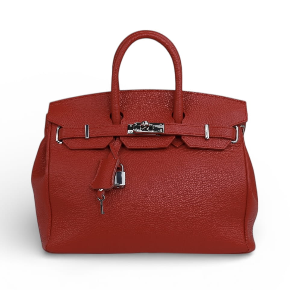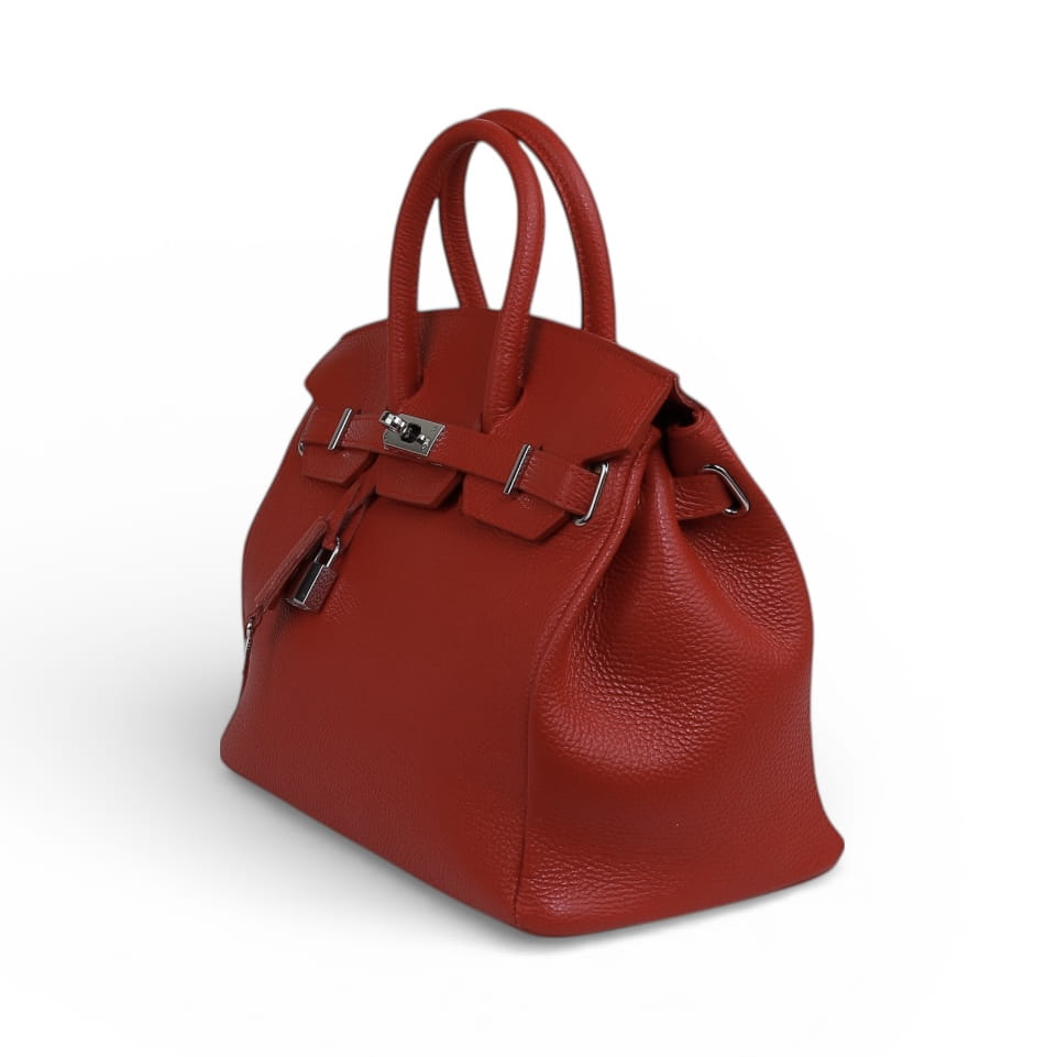 Elegancka torebka skórzana damska – naturalna skóra groszkowa, Włoska produkcja.