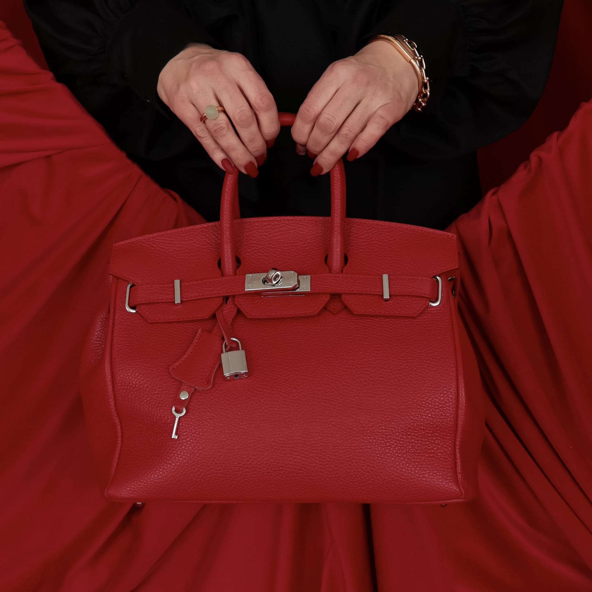 - Metalowe nóżki ochronne na spodzie torebki.