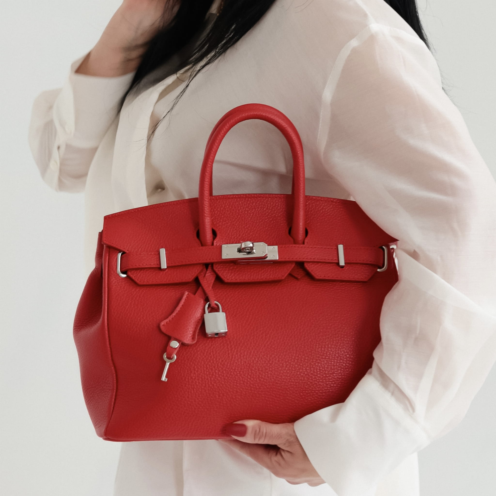- Możliwość noszenia w dłoni lub na ramieniu dzięki szerokiemu skórzanemu paskowi (nieregulowanym).