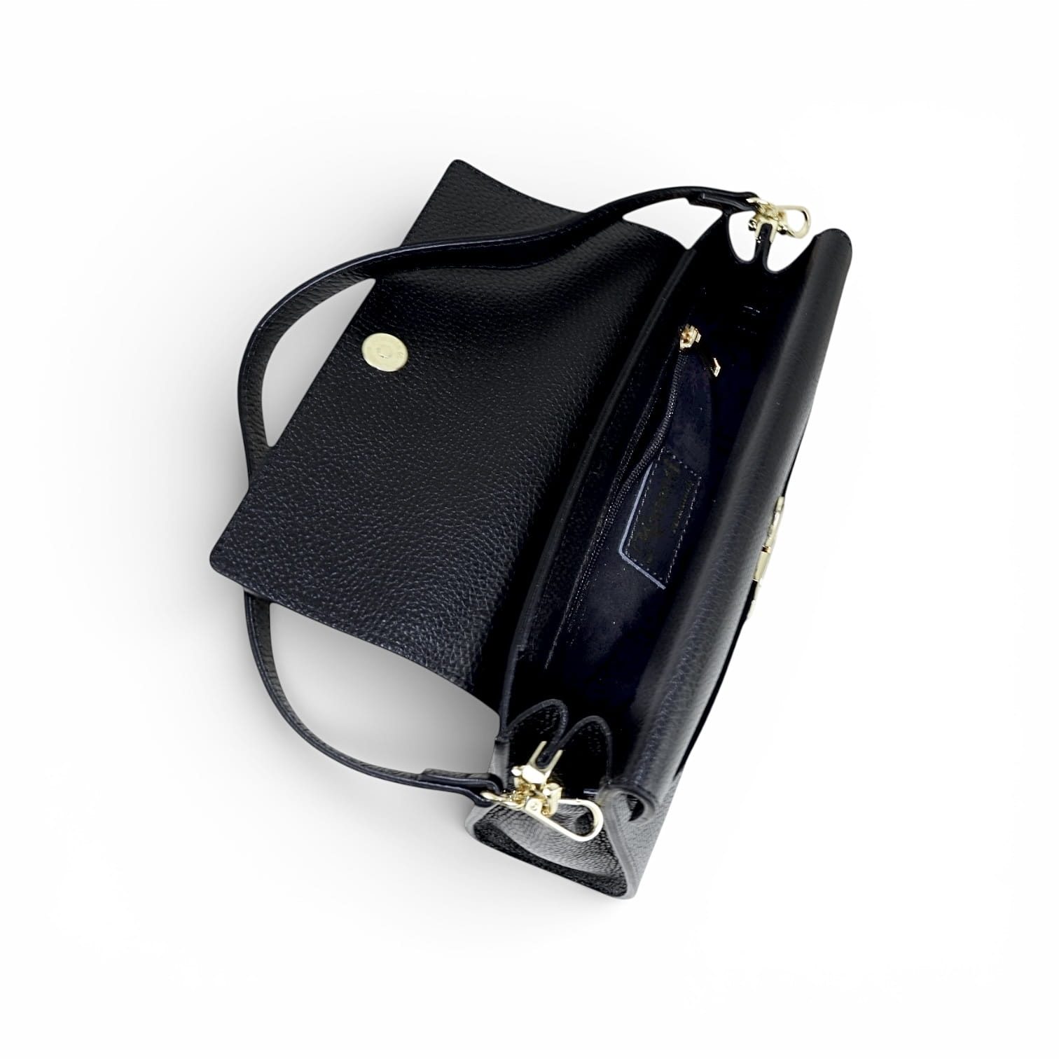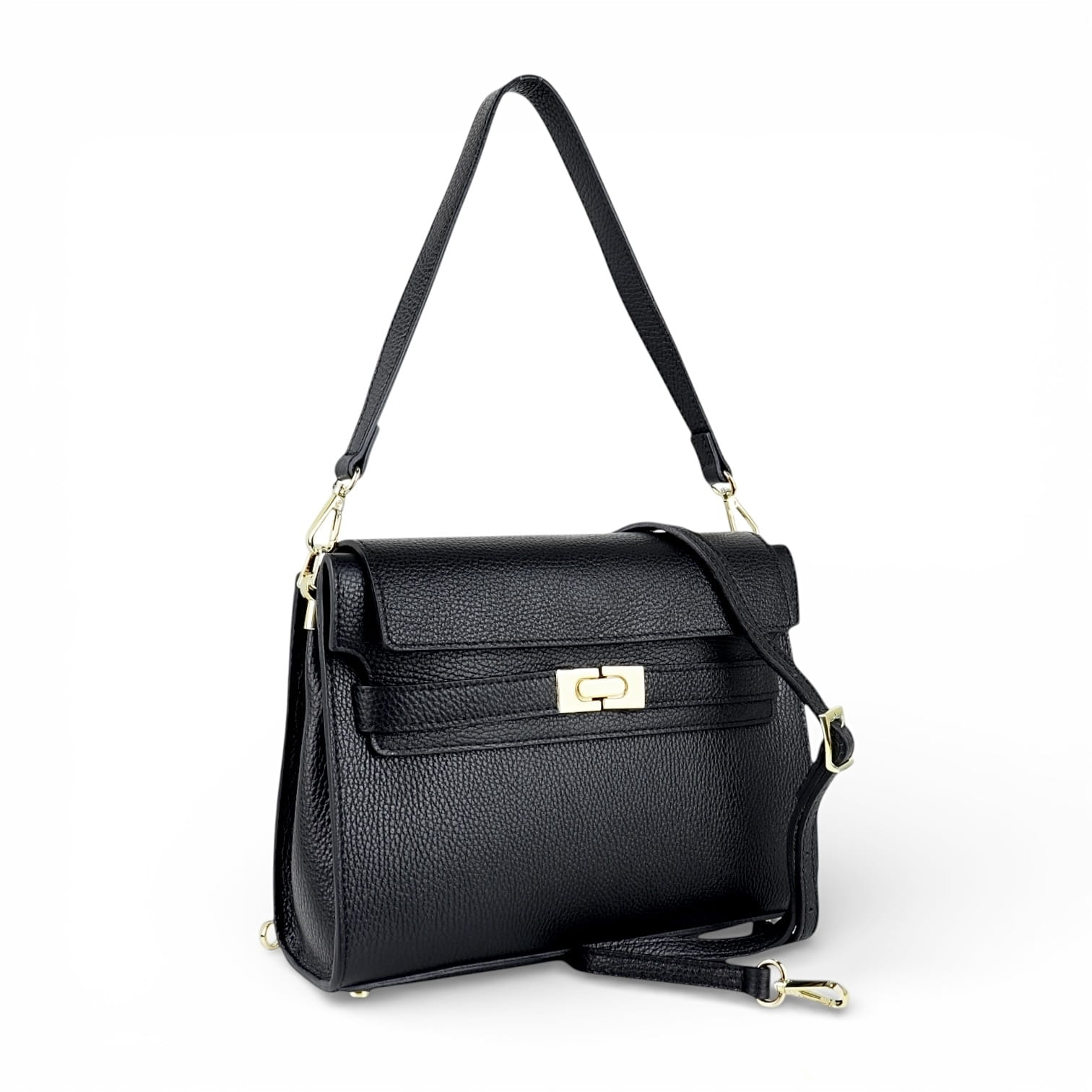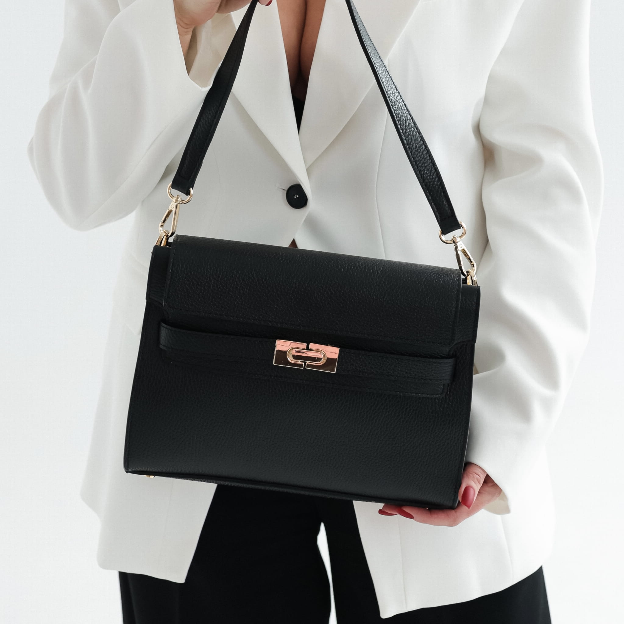 Ta włoska torebka skórzana łączy w sobie ponadczasowy design z nowoczesną funkcjonalnością.