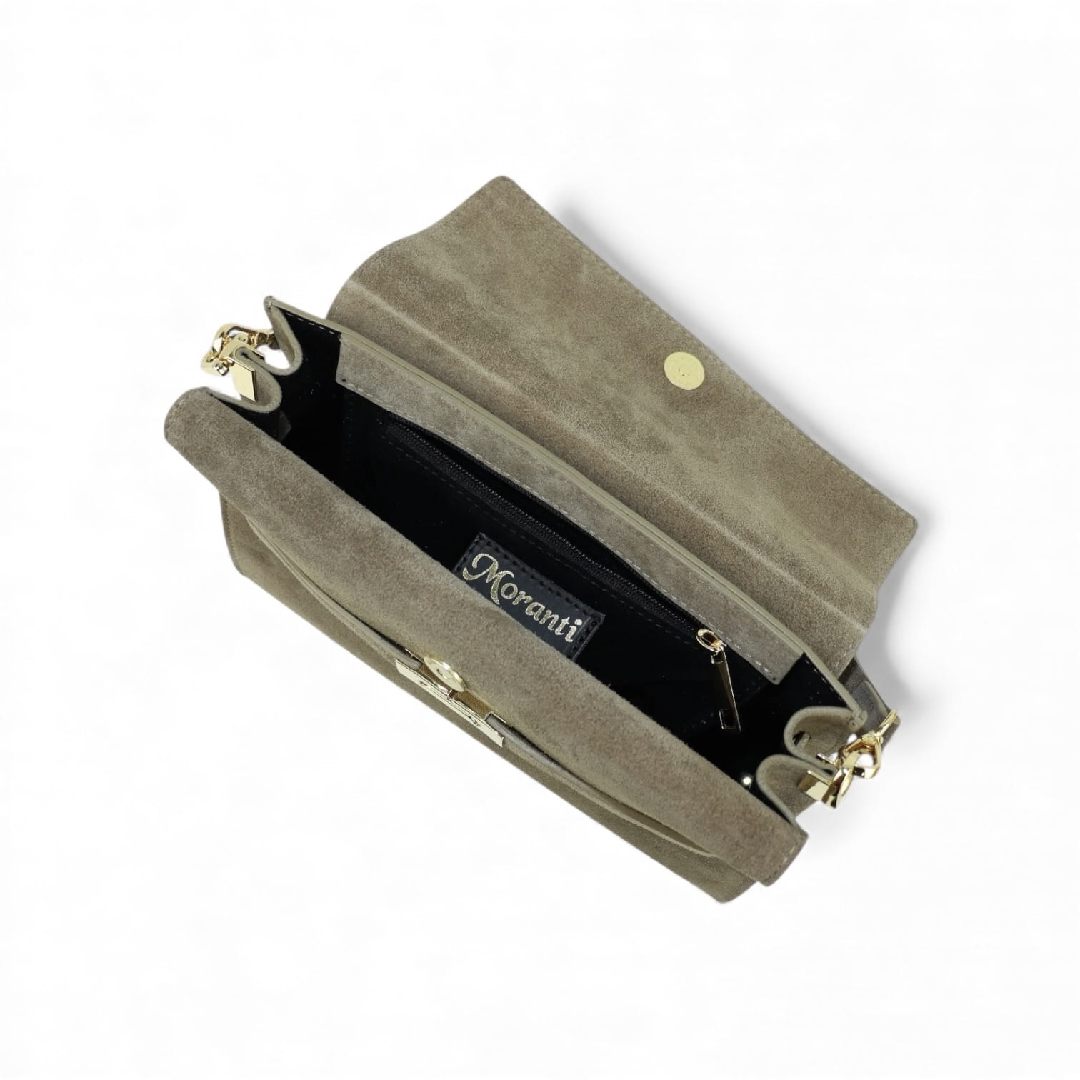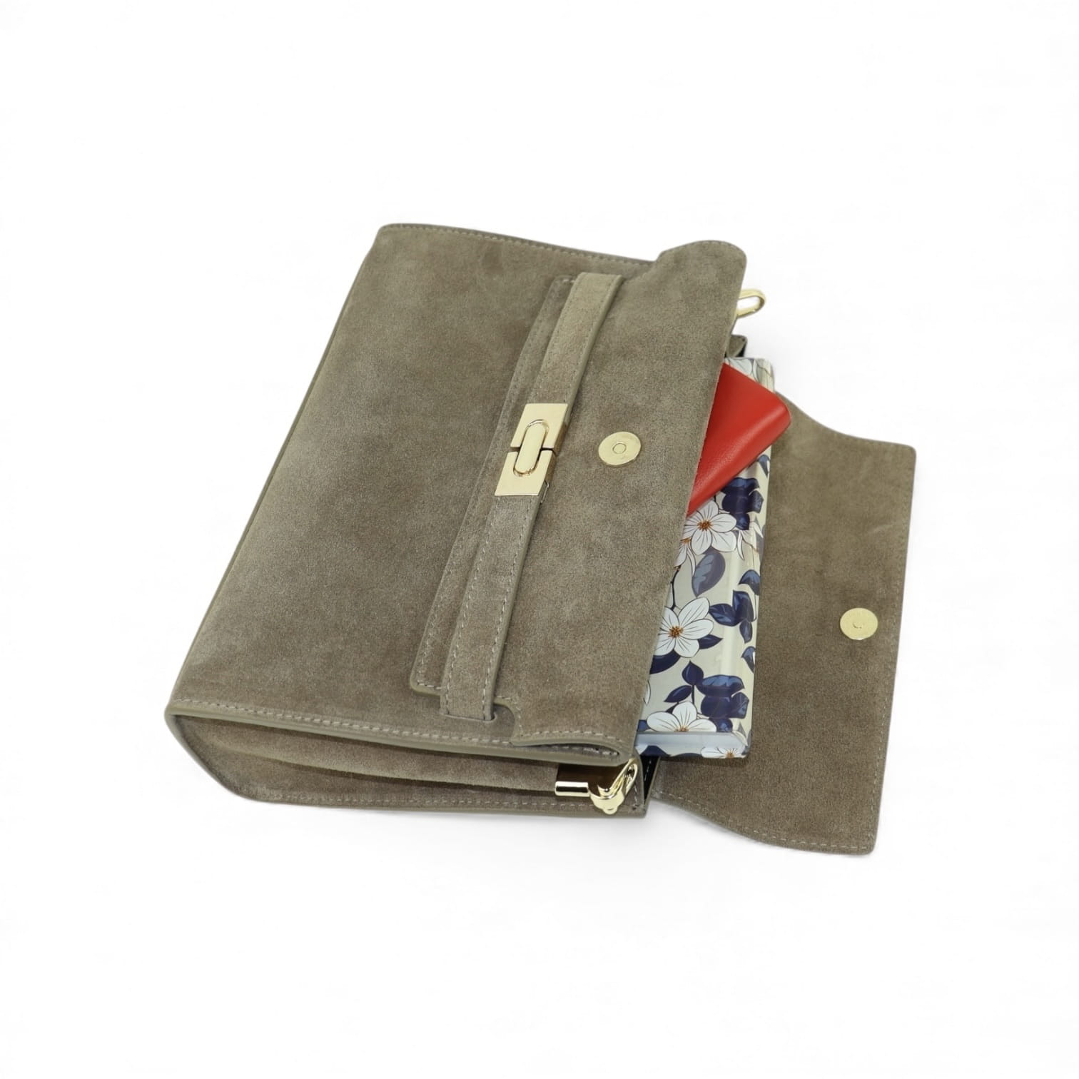 Stylowa torebka wykonana z wysokiej jakości naturalnego zamszu. Miękka w dotyku, a jednocześnie solidna i trwała. Idealna dla kobiet ceniących elegancję, minimalizm i funkcjonalność.