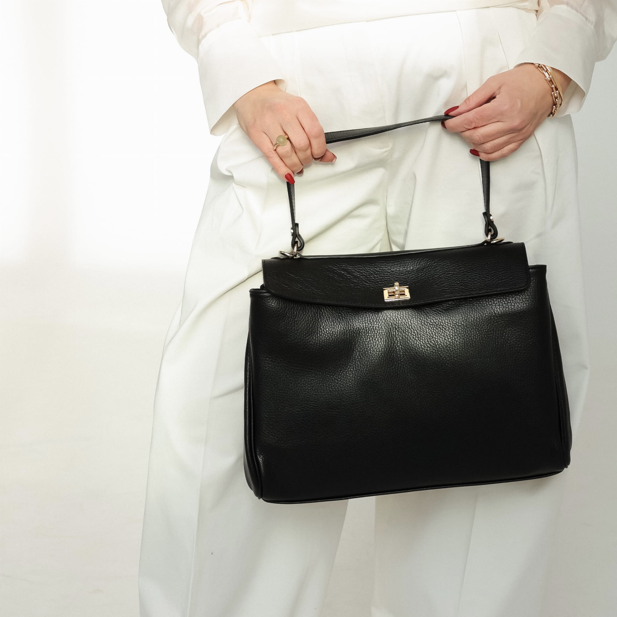 Torebka skórzana Kira to esencja włoskiego szyku i funkcjonalności. Wykonana z miękkiej, luksusowej, groszkowanej skóry naturalnej, która aż kusi, by jej dotknąć. Delikatna faktura przyjemna w dłoni, solidna konstrukcja — i ten zapach prawdziwej skóry…