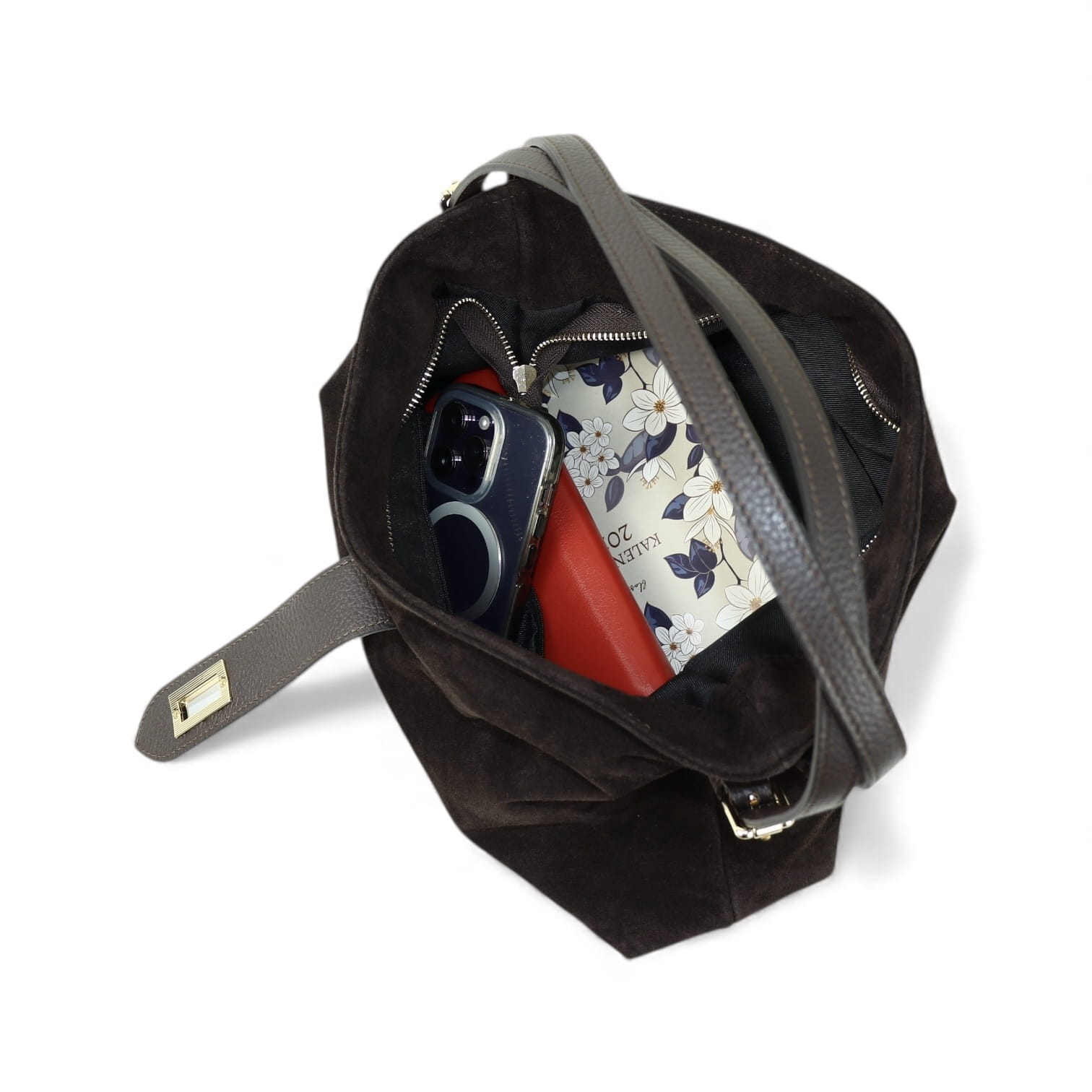 Elegancka torebka wykonana z naturalnego zamszu, szyta we Włoszech.